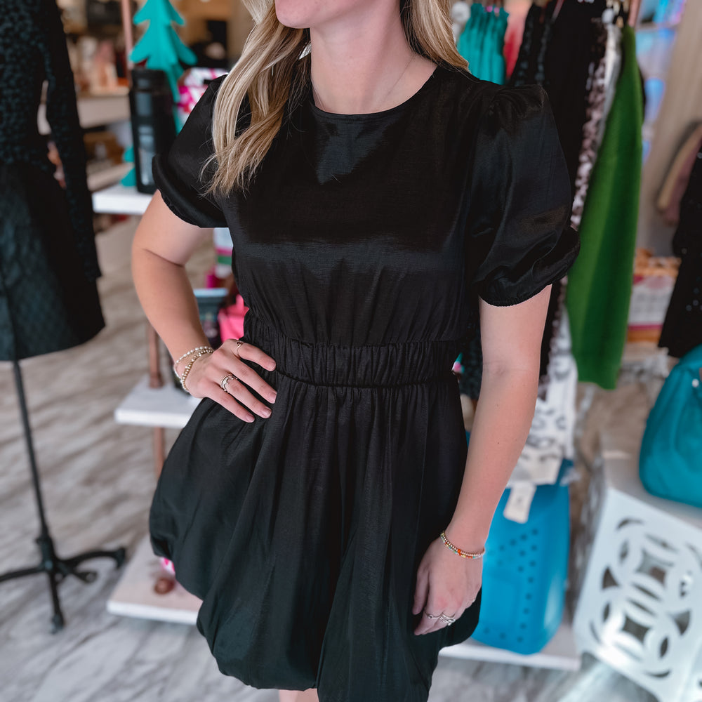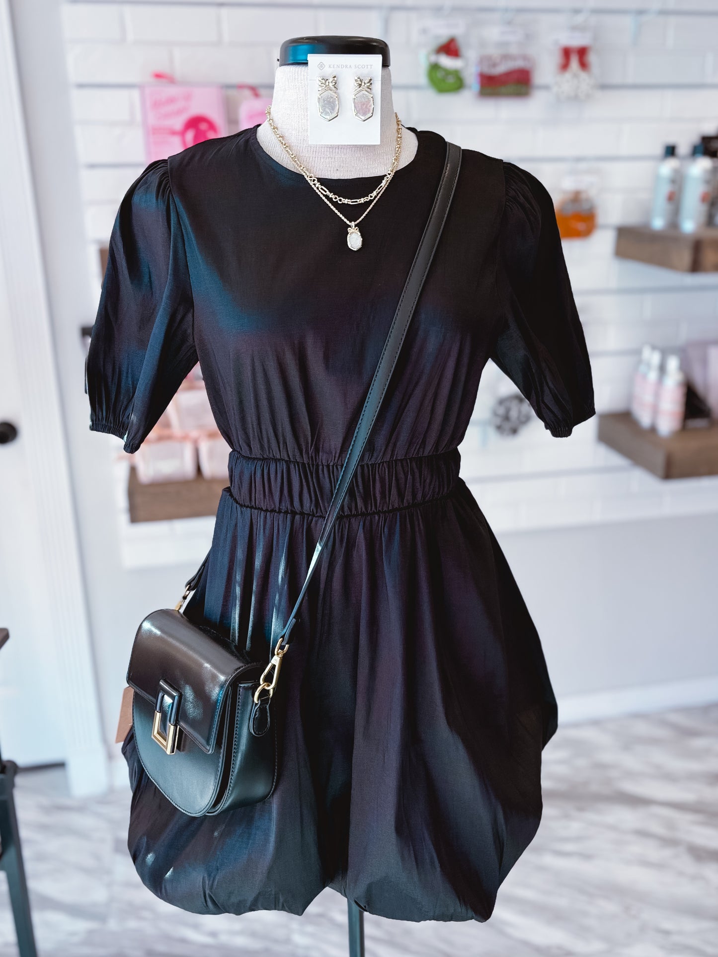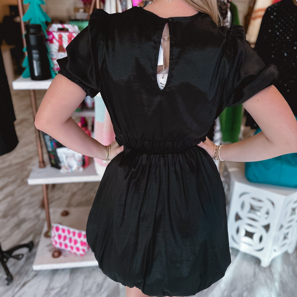 Martini Mixer Black Puff Sleeve Bubble Dress