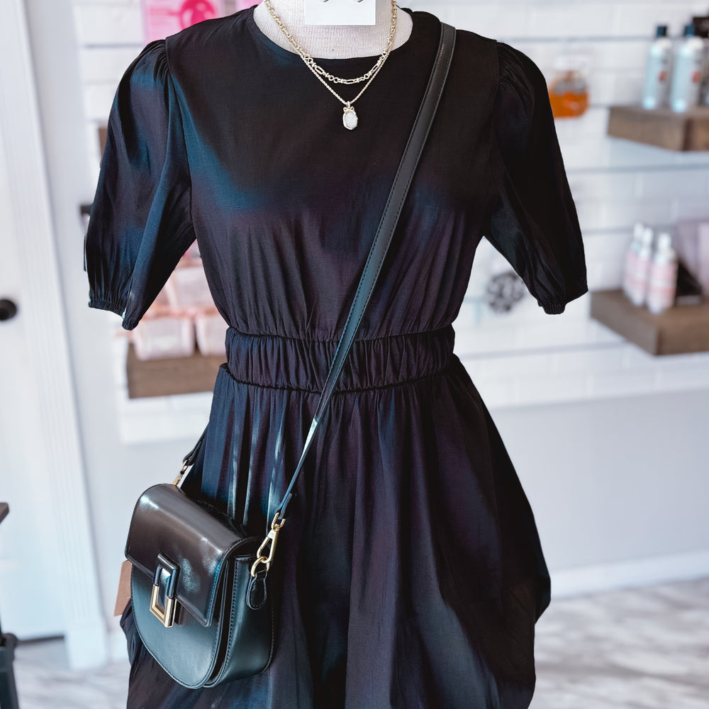 Slip into effortless elegance with this chic black bubble dress! Featuring playful puff sleeves and a fun bubble hem that adds movement and personality to your look, this dress is designed for comfort and style. The elastic waist ensures a flattering fit that moves with you, while the lined interior keeps you feeling confident all day long. True to size and ready to become your new go-to piece for any occasion.