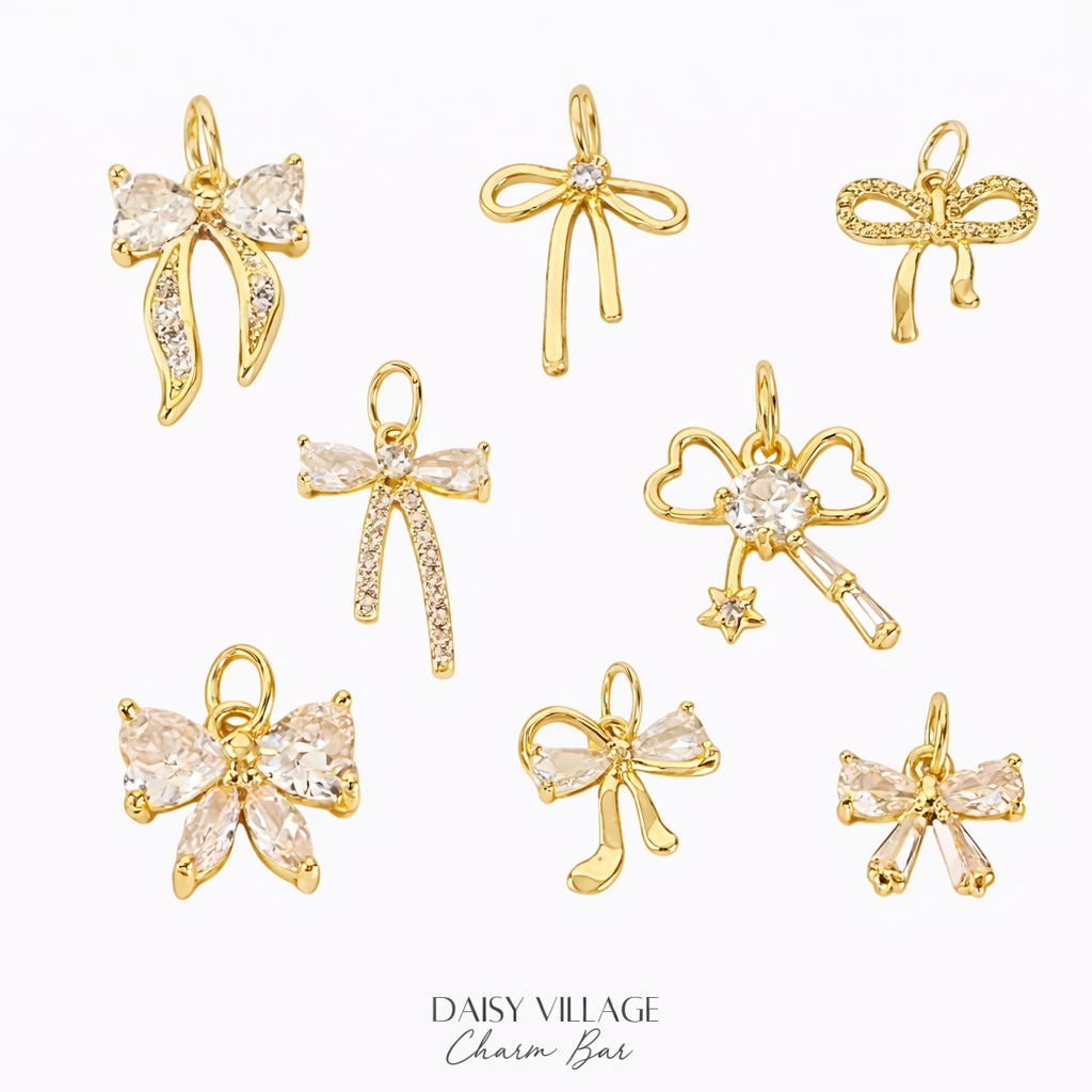 Dainty Crystal Bows CZ 18K Gold Plated Charm