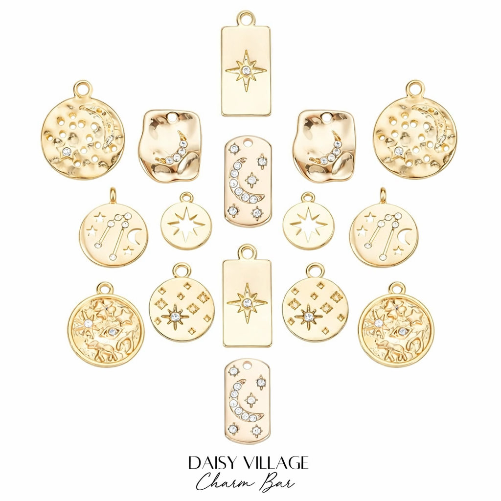 Interstellar Moon & Stars Disc 18K Gold Plated Charms