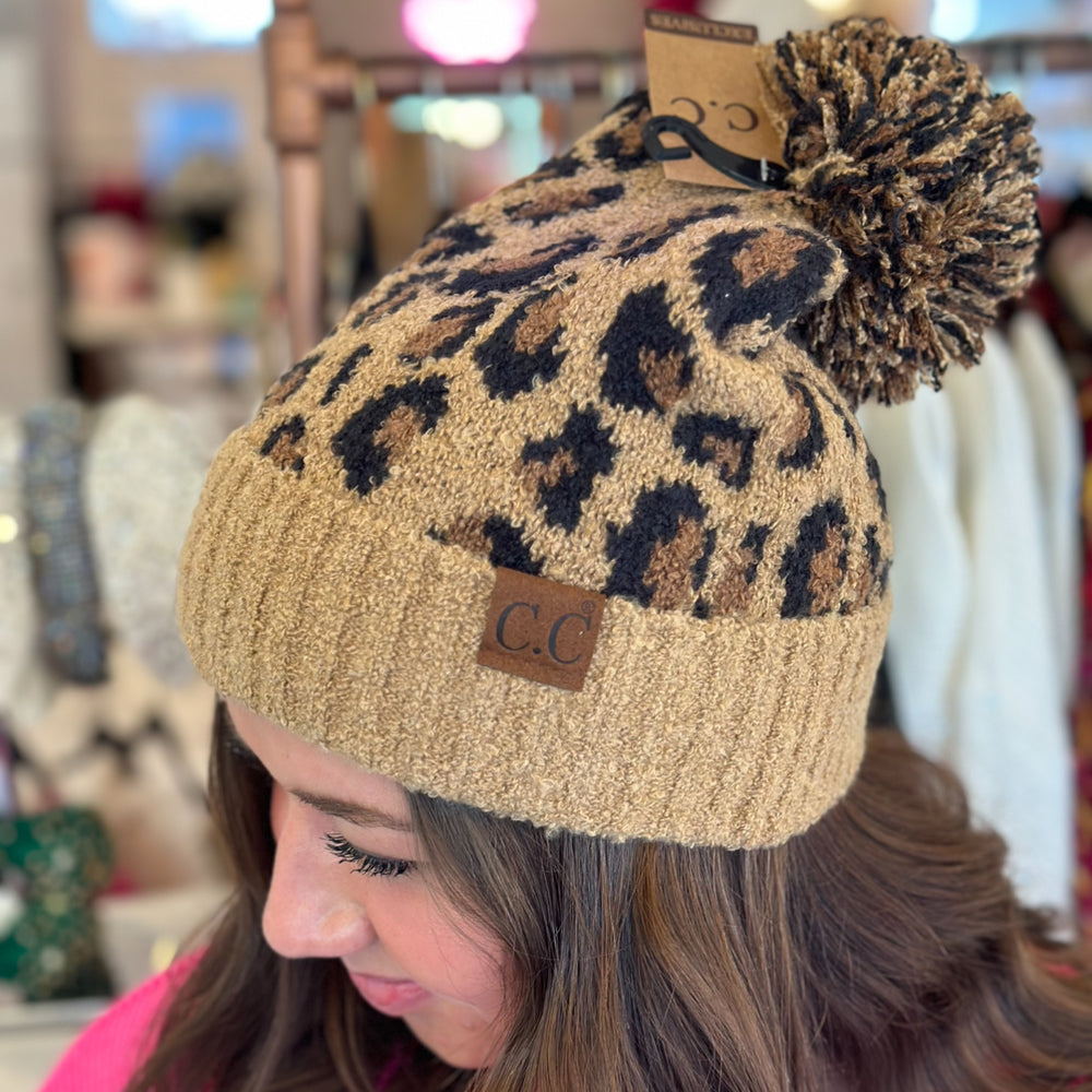 Taupe Leopard Luxe Beanie