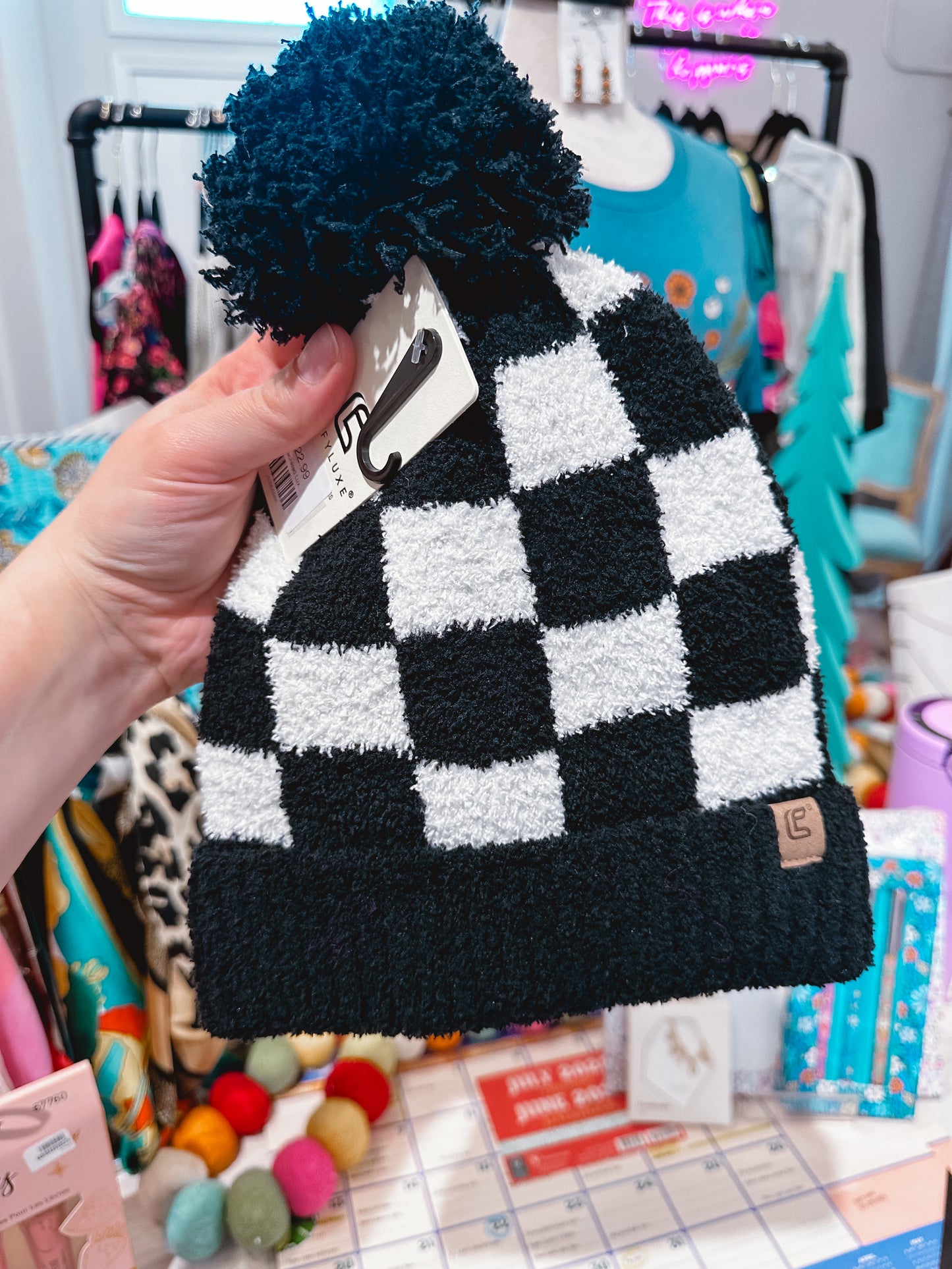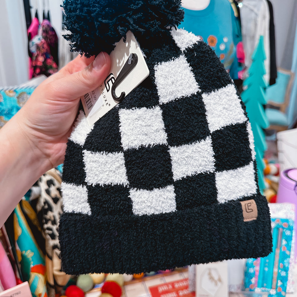 Checkered Luxe Pom Beanie