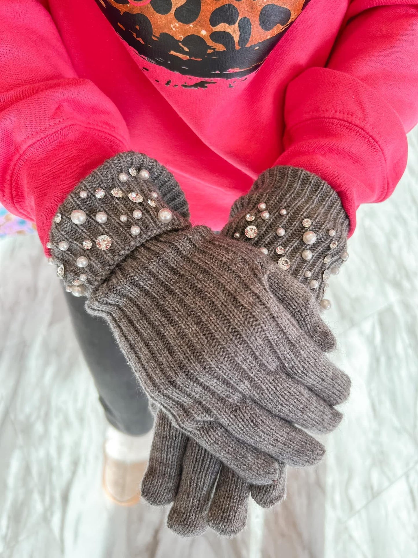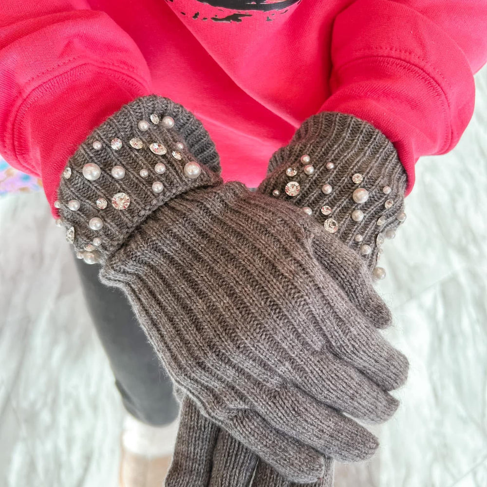 Pearl & Crystal Detailed Knit Pom Pom Beanie