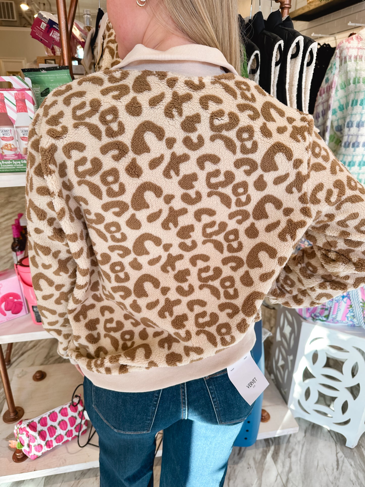 Forever Yours Leopard Sherpa Quarter Zip Top