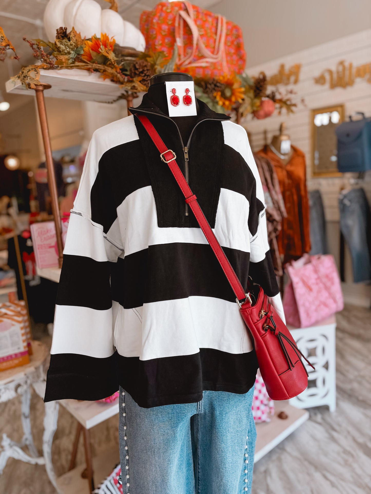 Stadium Glam Stripe Quarter Zip Black & White Pullover
