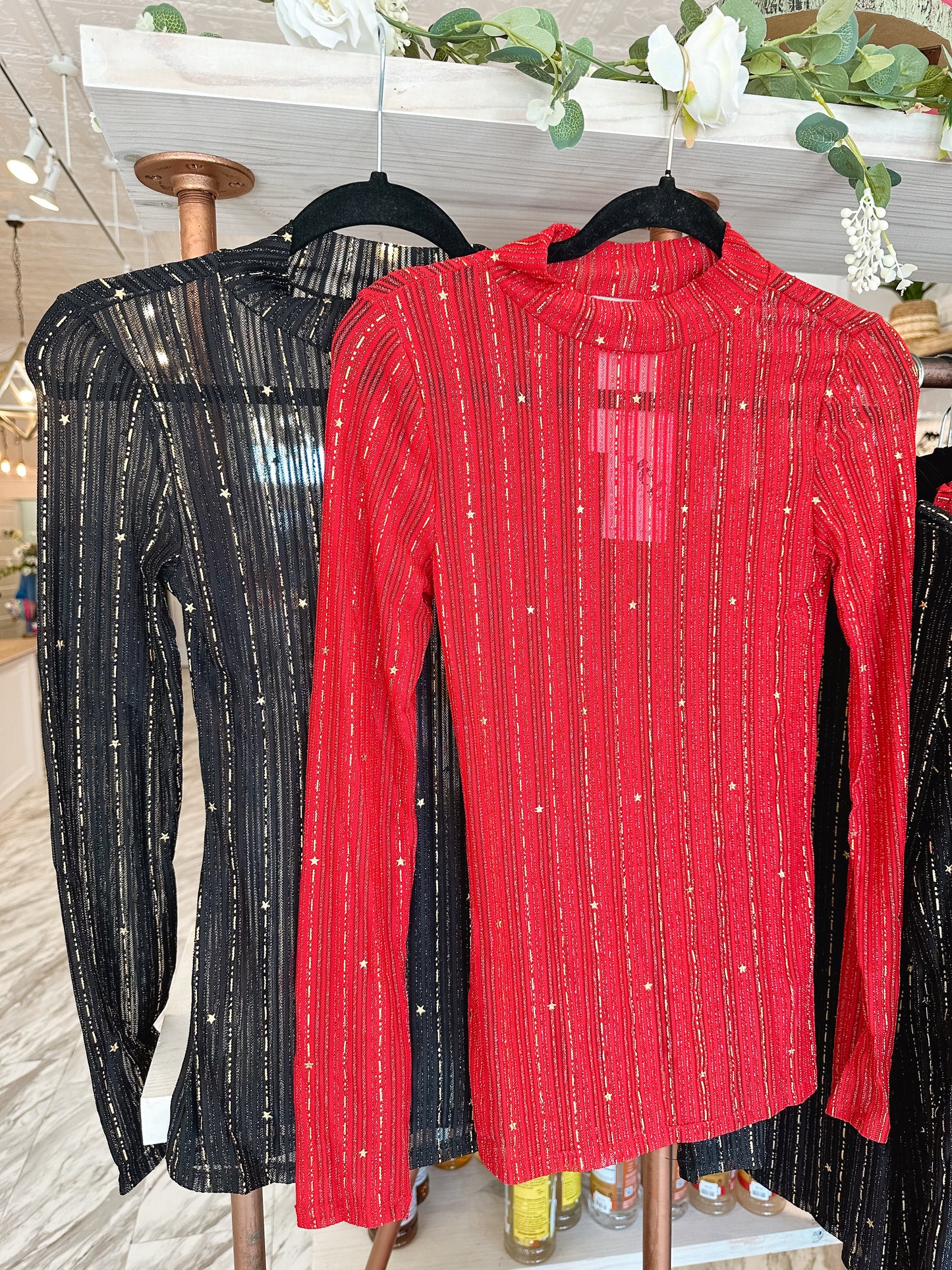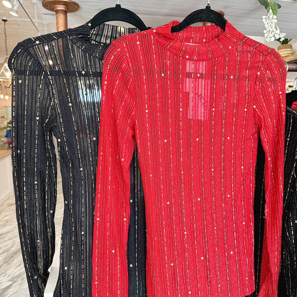 Sante Fe Sunset Black Embroidered Sleeve Top