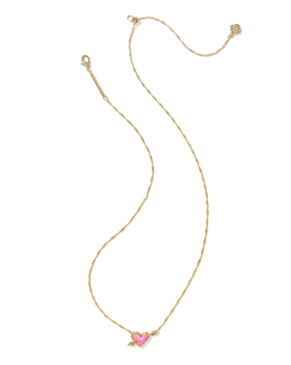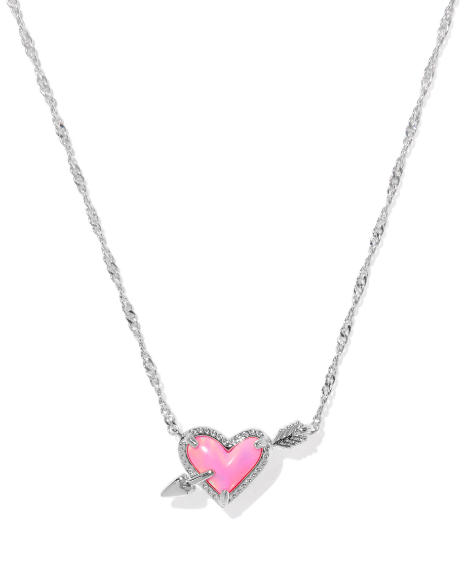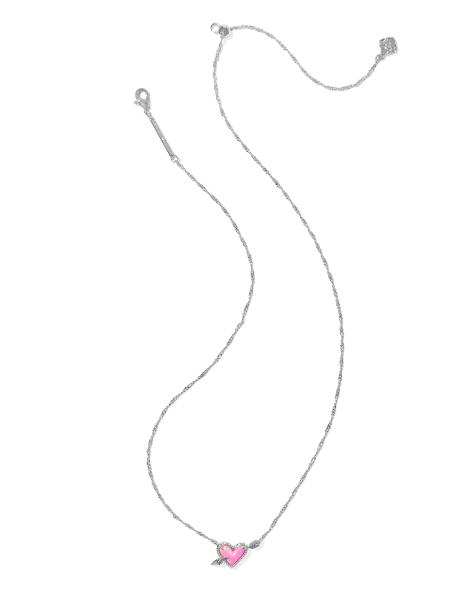 Ari Heart Arrow Pendant Pendant Necklace in Pink Opalescent Resin