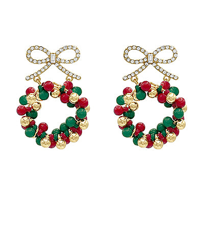 Christmas Wreath & Bow Earrings