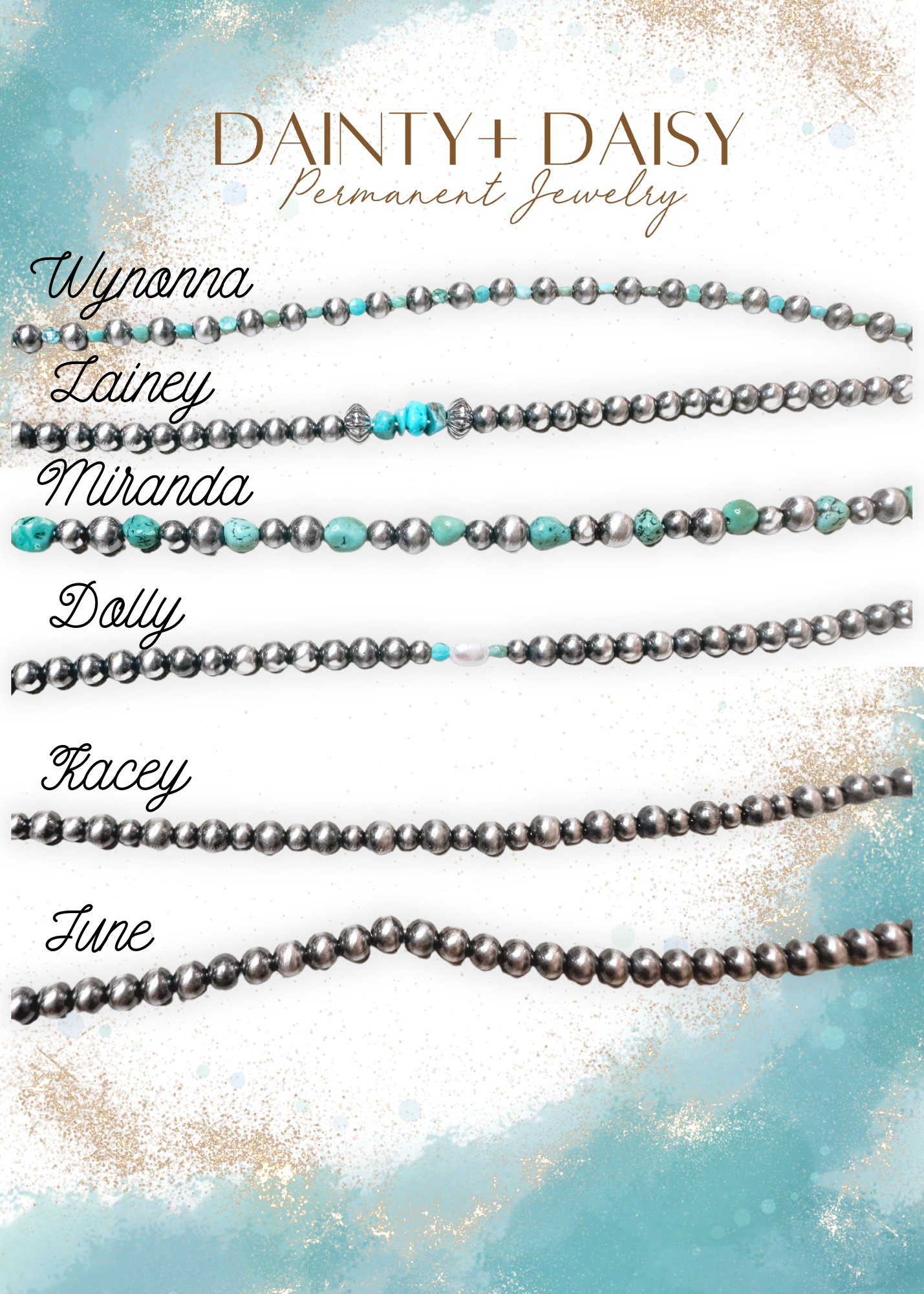 Since our Navajo Styles are stranded on gauged wire, these pieces are sturdy in comparison to traditional Permanent Jewelry Chain!