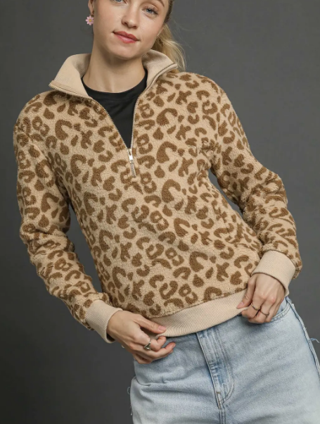 Forever Yours Leopard Sherpa Quarter Zip Top