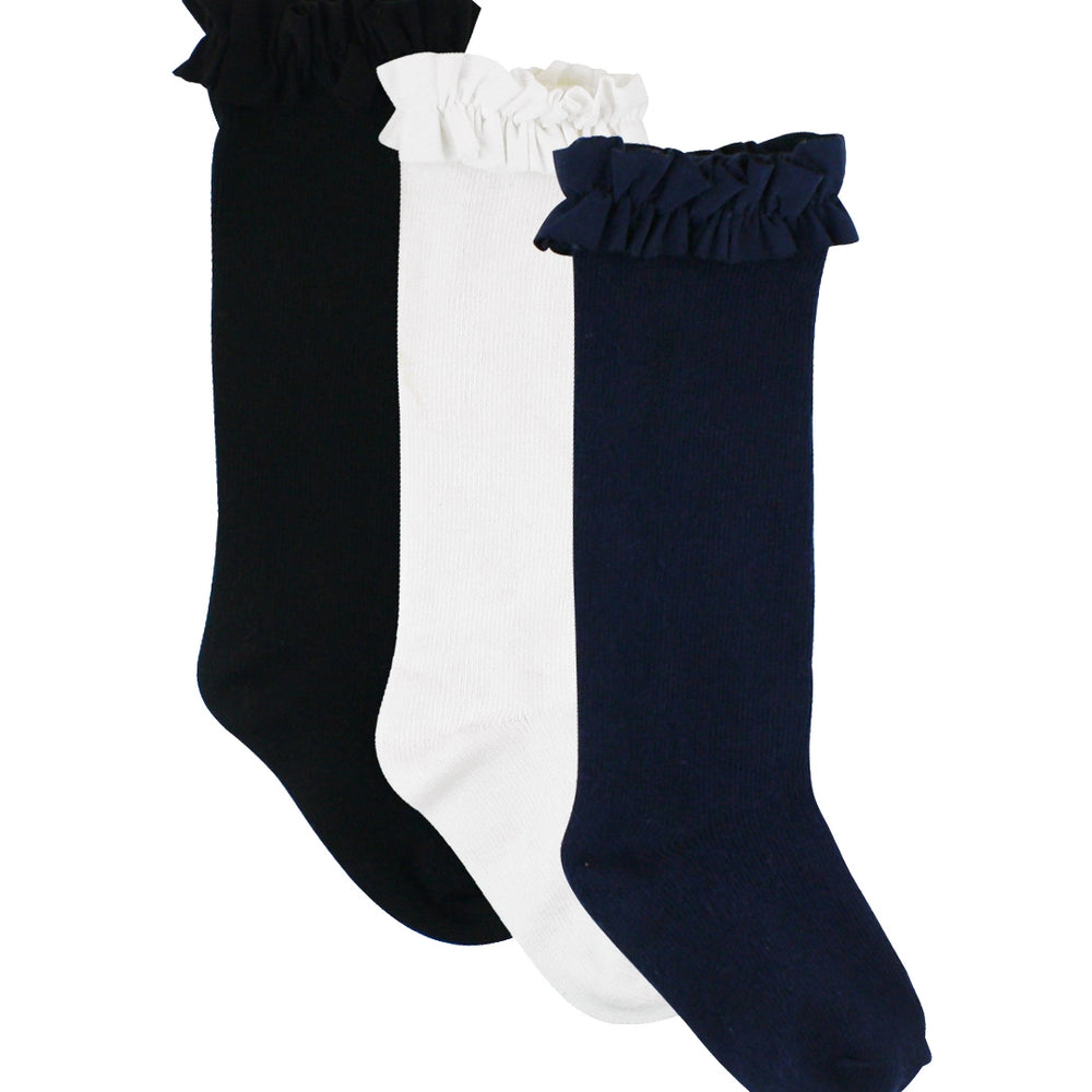 Black, White & Dark Navy Knee High Ruffle Sock Pack Set