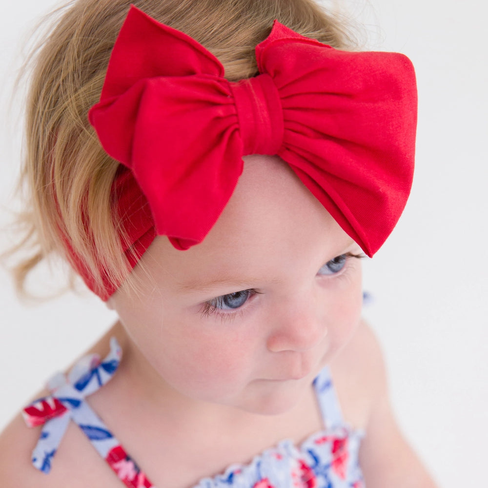 This soft knit big bow headband coordinates easily with all her favorite outfits, and the super stretchy and high-quality knit fabric is comfortable for all-day wear! You can't go wrong with this beautiful, classic red. Perfect for adding a pop of color into an outfit!