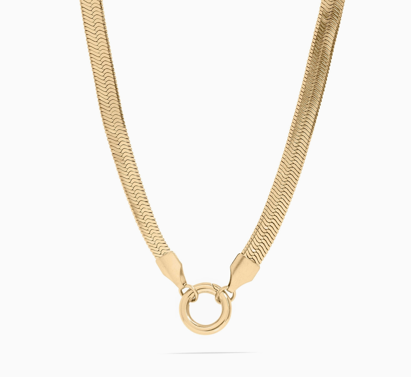 Create a stunning charm necklace with the Herringbone Charm Holder Necklace, a beautiful addition to our Charm Holder collection. The silky smooth herringbone design paired with a built-in charm holder, allows customers to personalize their look by easily adding their favorite charms. Its flat, reflective silhouette catches the light beautifully, offering a refined statement piece that's perfect for layering or wearing solo.