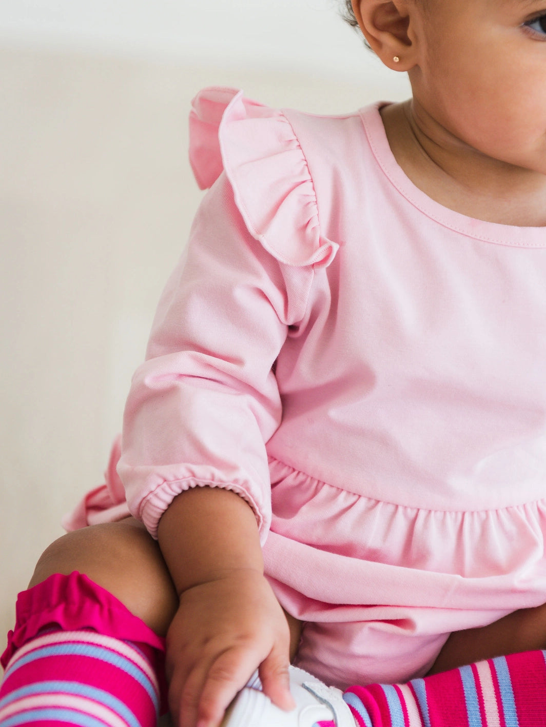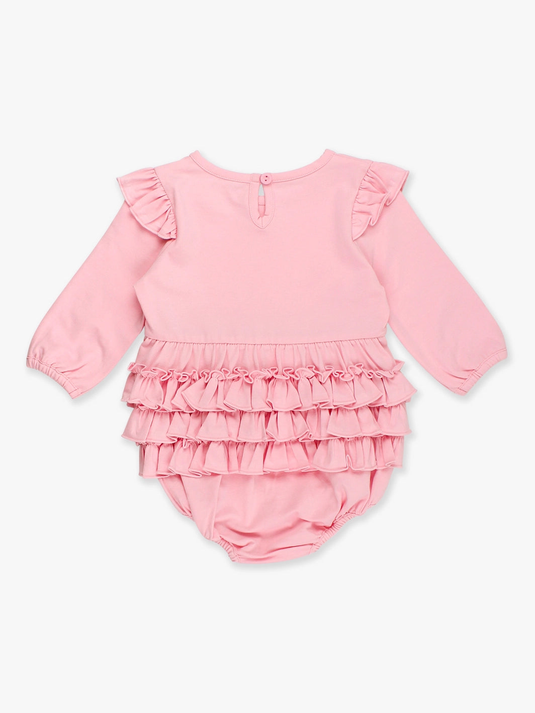 Pink Knit Long Sleeve Flutter Bubble Romper