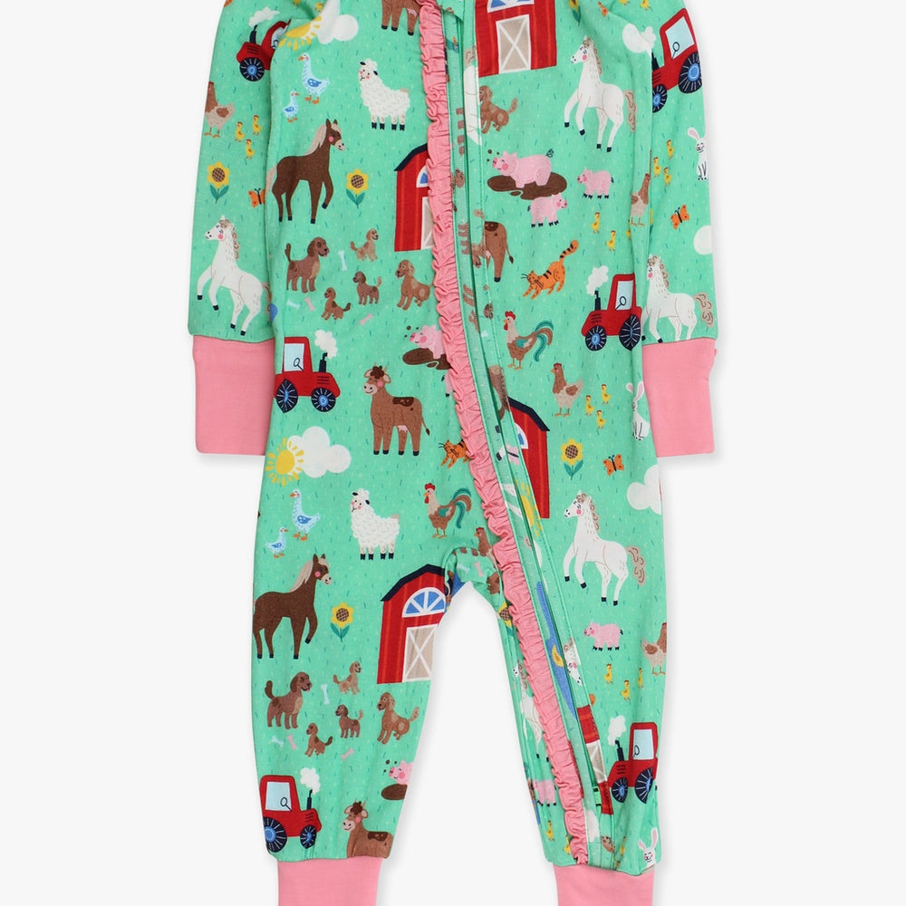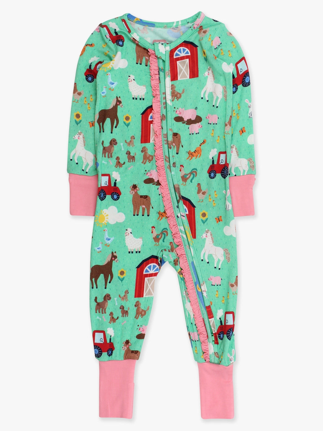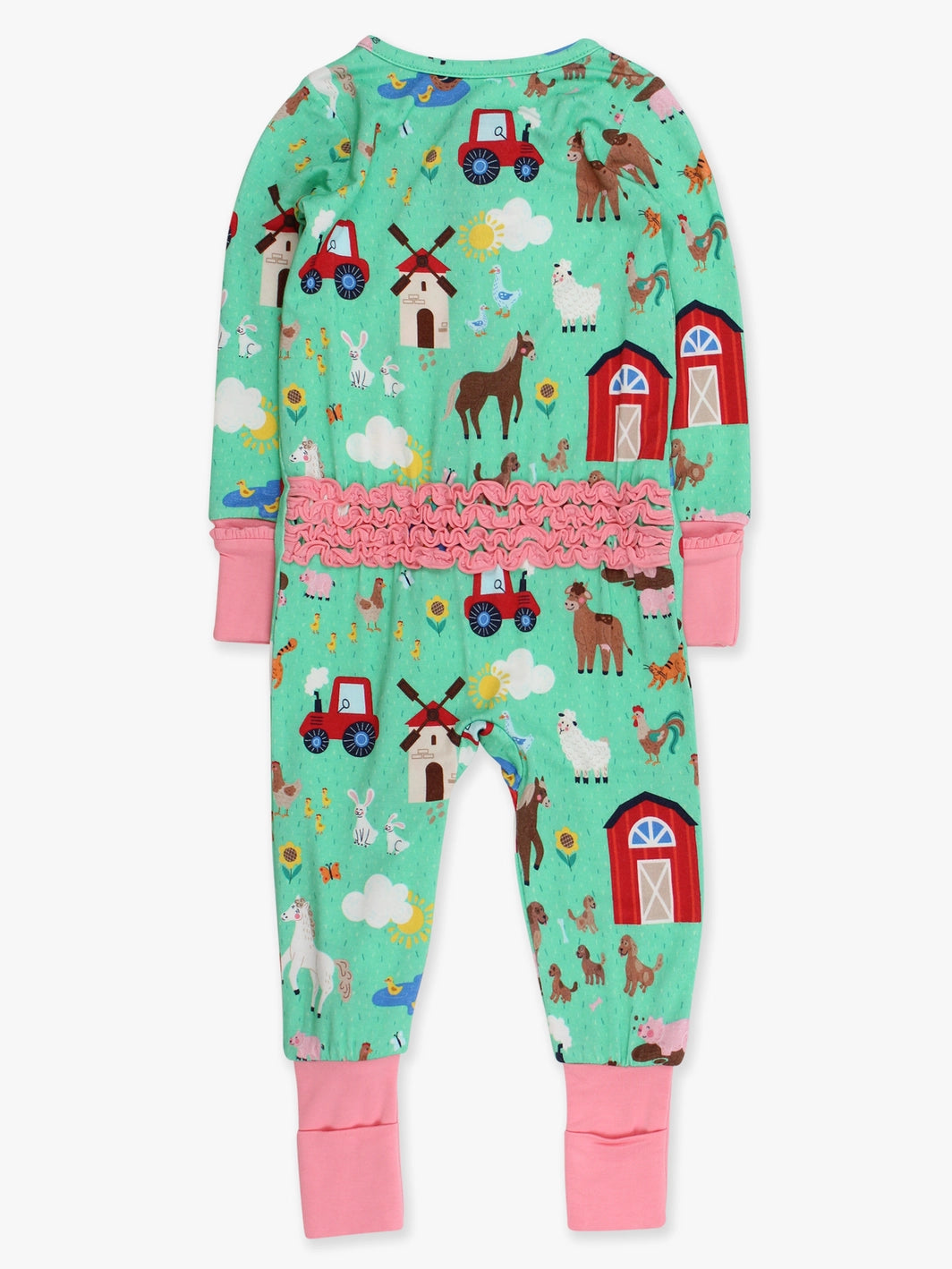 Softsnooze™ Farm Friends Convertible Ruffle One Piece Footie Pajama