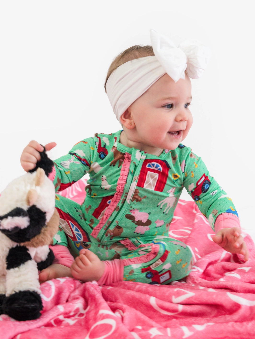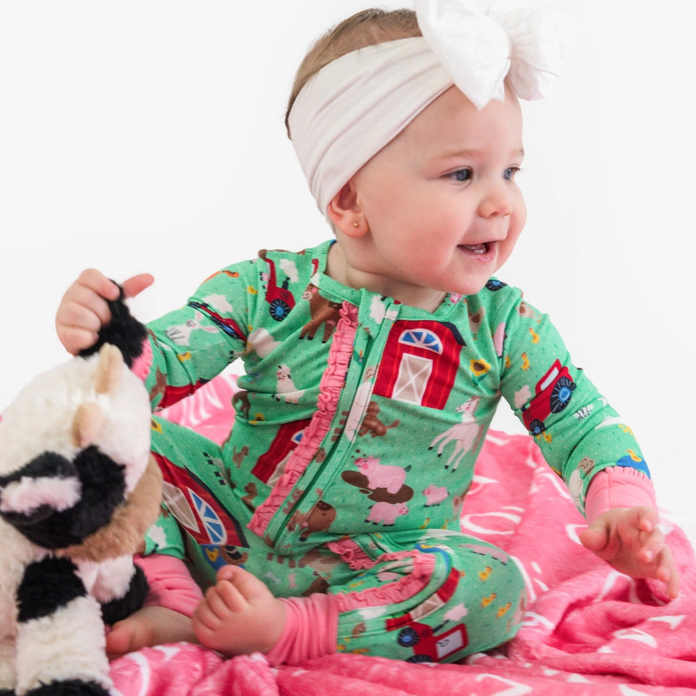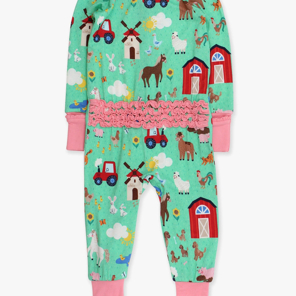 Softsnooze™ Farm Friends Convertible Ruffle One Piece Footie Pajama