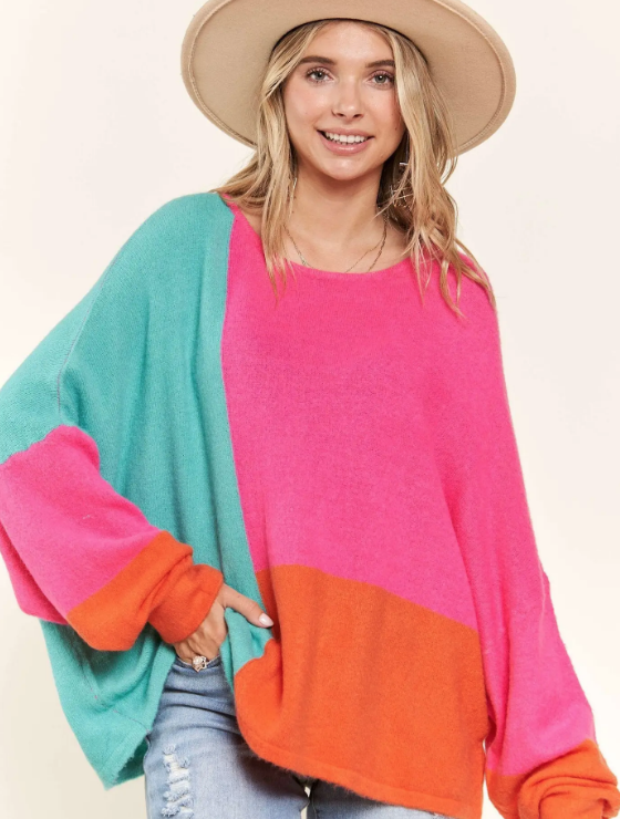 Taken Hot Pink & Teal Colorblock Relaxed Sweater